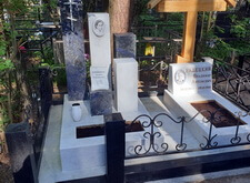 Так выглядело место захоронения на момент окончания работы: деревянный крест покрыт защитным раствором; мраморные изделия отшлифованы и покрыты гидрофобной субстанцией, стыки элементов промазаны белым герметиком; полые столбики, восстановлены; в цветнике заменена земля и посажен газон.
